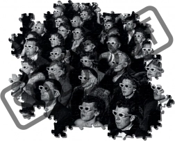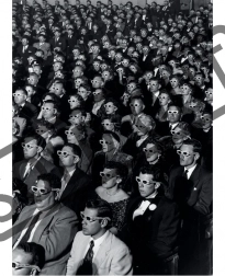 De klassieke foto van een publiek met 3D-brillen geeft je interieur stijl en een sterk contrast. Na het leggen is de afbeelding klaar om in te lijsten.