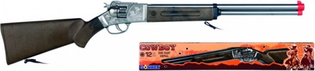 Dit cowboy metalen geweer voor 12 patronen met trommel is ideaal voor themaspellen, kostuums en verzameluitstallingen. De robuuste metalen constructie en zorgvuldige afwerking van Gonher zorgen voor een authentieke uitstraling en een lange levensduur.