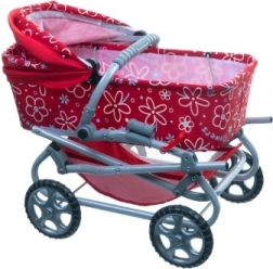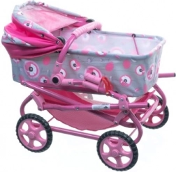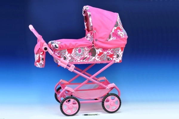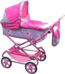 Geef kinderen plezier met deze stijlvolle kinderwagen voor poppen. Dankzij het lichte metalen frame en grotere wielen biedt hij eenvoudige bediening en soepel rijden. De kinderwagen is voorzien van een wieg met afdekhoes, een mandje en een praktische verzorgingstas.