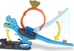 Lanceer de auto vanuit het politiebureau, raas door de verticale looping en mik op de crashzone recht op de T‑Rex af. Als hij valt, veranderen zijn ogen in het X‑symbool – een duidelijke overwinning voor kleine helden. De set biedt razendsnelle actie, stunts en spannende scenario’s uit Hot Wheels City.
