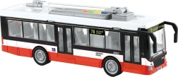 Deze gedetailleerd uitgewerkte trolleybus biedt kinderen een authentieke ervaring van stadsvervoer. De speelgoedbus speelt halte-aankondigingen in het Tsjechisch af (Hoofdstation, Stadstheater, Dierentuin) en is voorzien van aantrekkelijke lichteffecten. Dankzij de vliegwielaandrijving hoef je de trolleybus alleen maar een zetje te geven en hij rijdt vooruit.