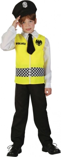 De set bevat een overhemd met stropdas, een politievest en een pet, zodat je eenvoudig een complete look creëert. Overige accessoires, zoals donkere broek of schoenen, kun je naar eigen wens toevoegen.
