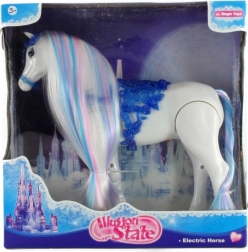 Dit plastic lopende paard zal alle kleine paardenliefhebbers blij maken. Na het inschakelen beweegt het zelfstandig en verrijkt het spel met realistische geluiden van draven en hinniken. Dankzij de compacte afmetingen is het ideaal voor de kinderkamer en voor onderweg.