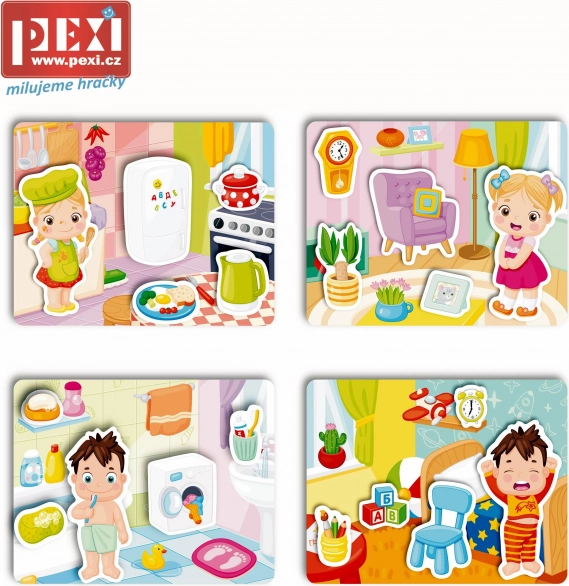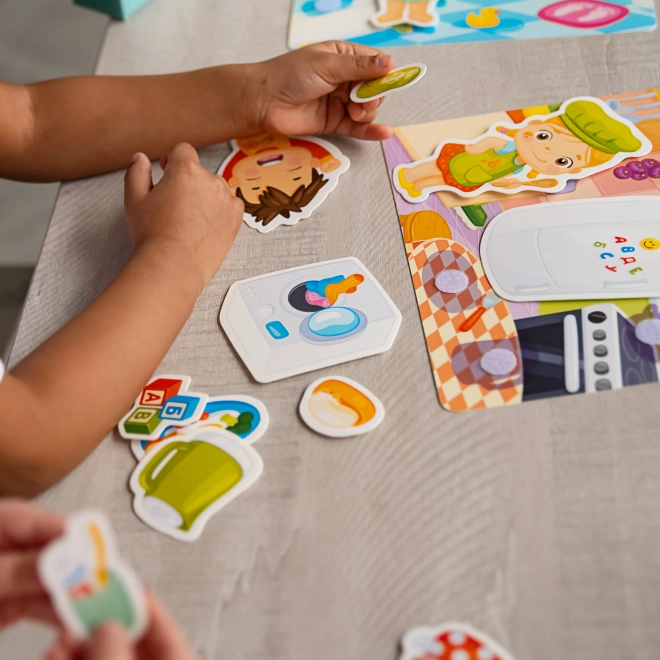 Velcro puzzels Thuis maken kinderen op een speelse manier vertrouwd met alledaagse voorwerpen en hun juiste plaats in het huishouden. Dankzij de flexibele kunststof platen en stukjes met klittenband is de bediening eenvoudig en veilig. De speciale oppervlakteafwerking voelt prettig aan en stimuleert zelfstandig spel.