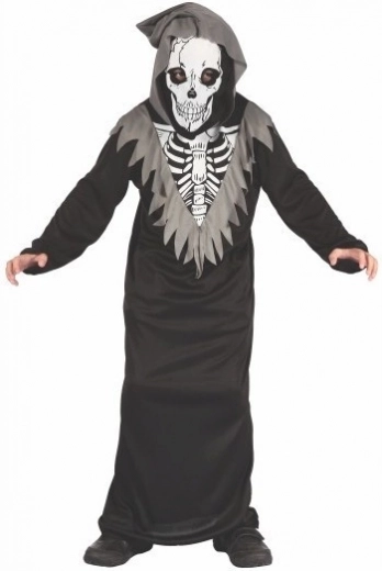 Spannend en leuk kostuum voor kleine Halloween- en verkleedfans – kinderkostuum skelet in maat 120–130 cm. Bevat een gewaad met capuchon en een muts, ideaal voor carnaval, feestjes en schooloptredens. Makkelijk aan te trekken, comfortabel en klaar voor heel veel plezier.