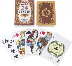 Deze set bevat 24 kaarten in het bereik 9–aas, ideaal voor spellen zoals Prší, een verkorte versie van Mariáš of “het spel Pan”. De fabrikant is het traditionele bedrijf Trefl-Kraków met wortels sinds 1947, wat betrouwbare papierkwaliteit en een lange levensduur garandeert.