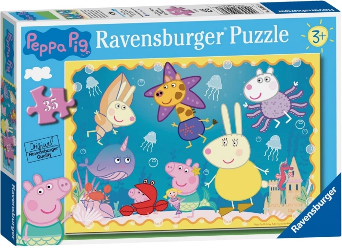 Ontdek de leuke Ravensburger kinderpuzzel met Peppa Pig in de onderwaterwereld. De puzzel met 35 stukjes is ideaal voor kinderen vanaf 3 jaar en stimuleert de fijne motoriek, het logisch denken en de geduldigheid. De hoge kwaliteit en het vrolijke motief zorgen voor uren creatief speelplezier.