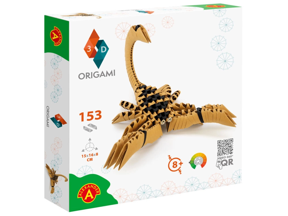 3D origami Schorpioen van het merk Alexander is een leuke en rustgevende creatieve activiteit voor kinderen en volwassenen. De onderdelen hebben een gepatenteerde vorm met een ingestanste vouwlijn, waardoor je de basismodule met drie eenvoudige bewegingen maakt en ze vervolgens zonder lijm in elkaar klikt. Het voltooide model heeft een decoratieve uitstraling en wordt een originele versiering voor de kamer.