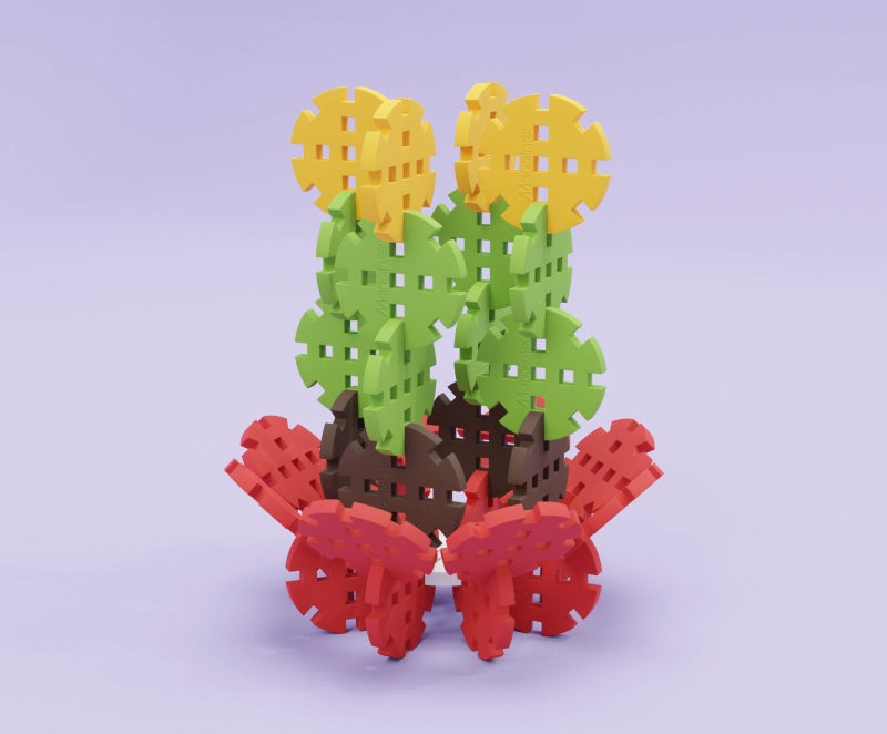 Mini constructiewieltjes is een innovatieve bouwset die spelen met leren verbindt. De speciale vorm van de wieltjes met uitsteeksels maakt het mogelijk om bewegende mechanismen, tandwieloverbrengingen en originele 3D-bouwwerken te creëren. Kinderen trainen spelenderwijs hun fijne motoriek, logisch denken en ruimtelijk inzicht – en dat alles veilig dankzij het zachte en veerkrachtige materiaal.