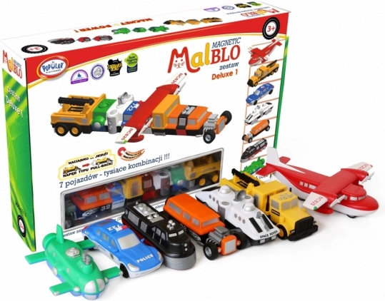 De MalBlo MAGNETIC Deluxe bouwset is een slimme speelset voor jonge bouwers. Met 21 elementen in de doos (7 kant‑en‑klare voertuigen) kun je meer dan 1000 verschillende combinaties maken – van auto’s en trekkers tot vliegtuigen en futuristische machines. De onderdelen hebben de ideale magnetische en mechanische verbinding, waardoor ze gemakkelijk te bedienen zijn en toch stevig blijven zitten.