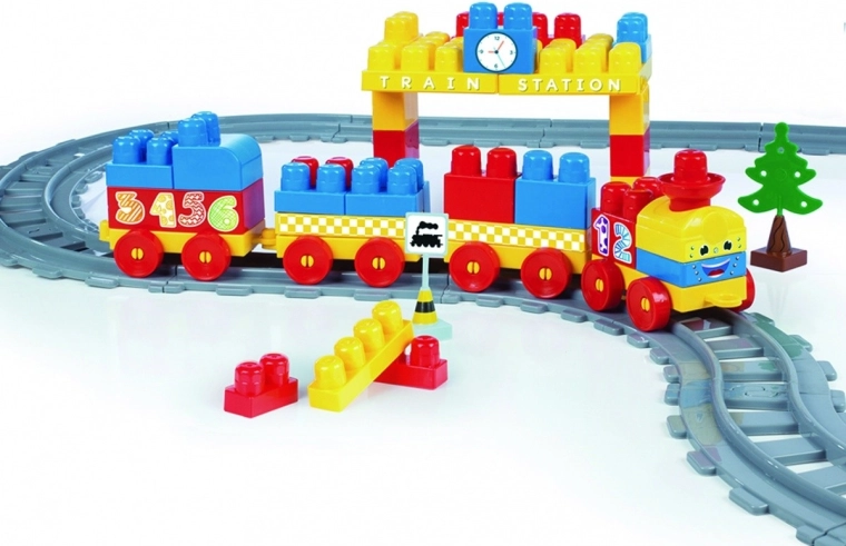 Bouw je eigen spoorweg en ga op een vrolijke rit! Het Baby Blocks-treintje is een veelzijdig speelgoed dat kinderen plezier geeft in zowel bouwen als spelen. Dankzij de diverse railvormen leg je eenvoudig oneindig veel routevariaties met een totale lengte van 3,35 m. De afzonderlijke elementen verbinden gemakkelijk en stevig, waardoor de constructie stabiel is.