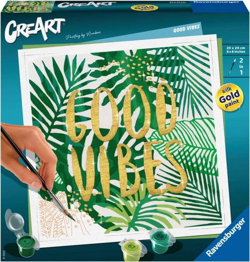 De CreArt: Good Vibes-set biedt een leuke en ontspannende manier om je onder te dompelen in de wereld van kunst. Dankzij het overzichtelijke schilderen op nummer kunnen beginners én gevorderde jonge makers kleurrijke en indrukwekkende schilderijen maken zonder bang te zijn voor fouten. De compacte afmetingen maken opbergen en meenemen eenvoudig, zodat je altijd en overal kunt creëren.