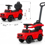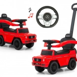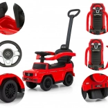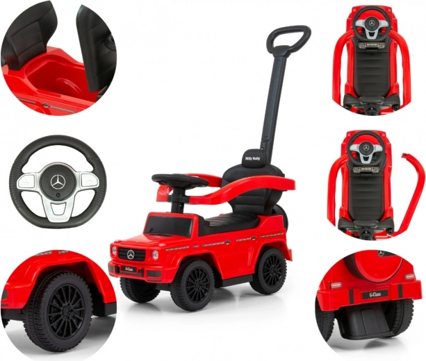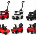 De MERCEDES G350d loopauto met officiële Mercedes-licentie is vervaardigd met grote aandacht voor de kleinste details en de kwaliteit van de gebruikte materialen. Dankzij het multifunctionele karakter verveelt het speelgoed uw kind niet snel en worden handvaardigheid en motorische vaardigheden spelenderwijs ontwikkeld. Een extra voordeel is het interactieve stuur, dat het spel nog leuker maakt. Het product heeft zwenkwielen die met het stuur of de duwstang worden bestuurd, wat zorgt voor comfortabel rijden tijdens wandelingen. Het is zeer eenvoudig te monteren en te demonteren, stabiel en veilig. De afzonderlijke elementen (beugels en duwstang) kunnen worden verwijderd, zodat de loopauto “meegroeit” met uw kind.