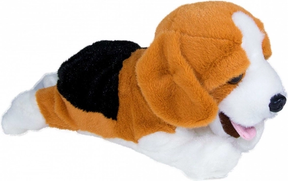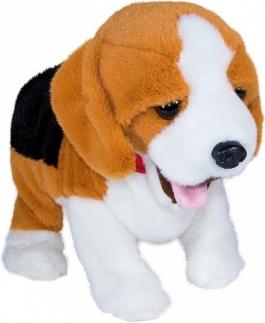 De kenmerkende beagle-kleuring in combinatie met het zachte materiaal nodigt uit om te knuffelen. De gedetailleerde afwerking van snuit, oortjes en de sprekende oogjes versterkt de band van het kind met het speelgoed.