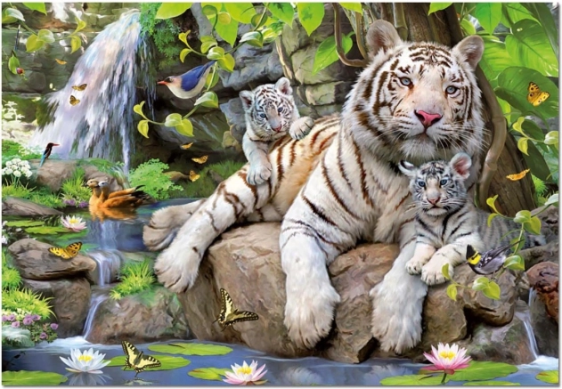 De Puzzel Witte Tijgers-serie brengt je een prachtige scène met witte tijgers in een weelderige jungle. Deze puzzel van 1000 stukjes biedt niet alleen plezier, maar ook mentale oefening; dankzij de duurzaamheid en elegante kleuren is het een ideaal cadeau!