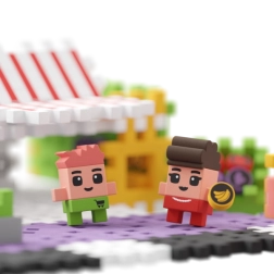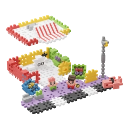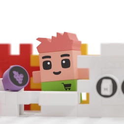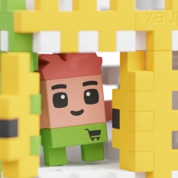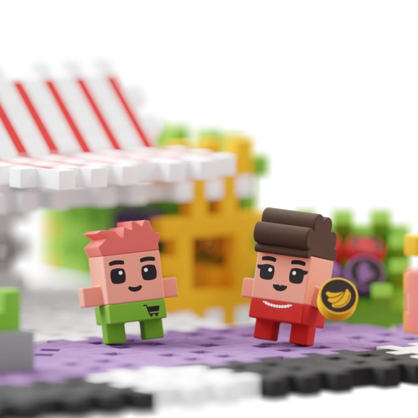 De winkelspeelset bevat wel 148 bouwstenen en twee originele figuren, van wie er één zich in het zweet werkt om de bewoners van verse etenswaren te voorzien. Zet de set in elkaar volgens de instructies en combineer hem met andere sets uit de Wafel City-serie, die samen de stad tot leven brengen. Natuurlijk niet zonder hulp van jullie fantasie! En als jij en je kleine jongen op een nieuw idee komen, kun je met de elementen van de set een geheel nieuw en fascinerend bouwwerk maken.