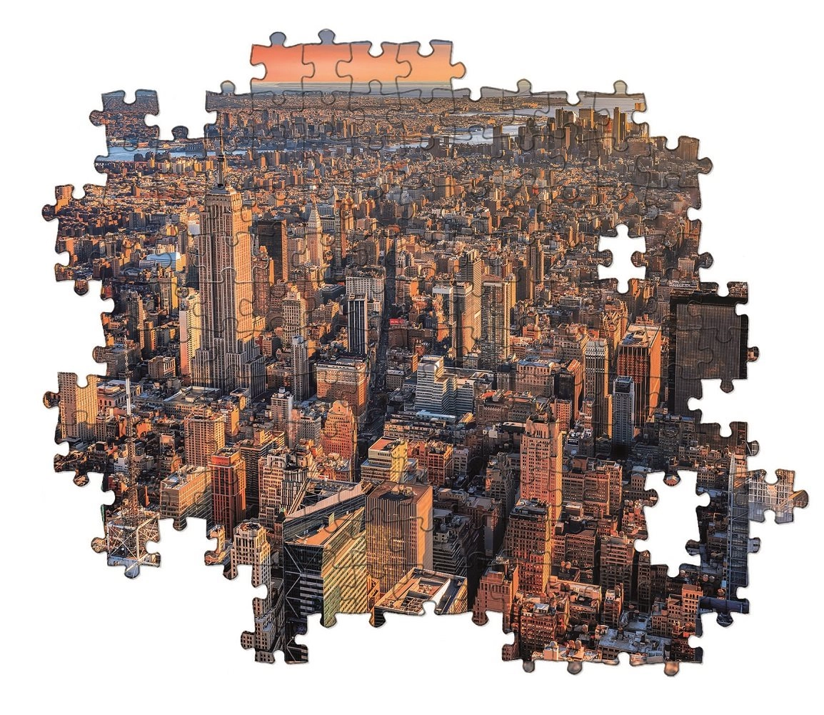 De puzzel toont het beroemde stadsgezicht van New York City bij zonsondergang, ideaal voor liefhebbers van stedelijke schoonheid.