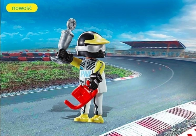 Breid je collectie uit met de dynamische racer uit de PLAYMOBIL Playmo-Friends serie. Het figuurtje met realistische accessoires inspireert tot spannende races en verhalen over overwinning. De onderdelen zijn hygiënisch, gemakkelijk afwasbaar en de kleuren bladderen niet af.
