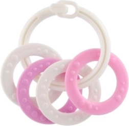 Texturen op het oppervlak van de ringen bieden extra stimulatie voor het tandvlees van baby's tijdens het doorkomen van tandjes.