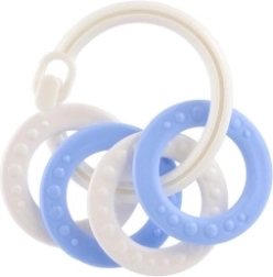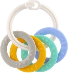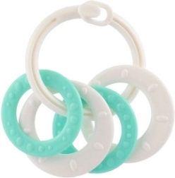 Geschikt voor kinderen vanaf 3 maanden, deze bijtset bevat kleurrijke kunststof ringen, die niet alleen licht zijn, maar ook helpen bij de ontwikkeling van de fijne motoriek. Dankzij de verschillende structuren en vormen biedt dit speelgoed meerdere zintuiglijke prikkels speciaal ontworpen voor de doorkomende periode van een baby.