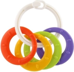 Deze bijtset met kleurrijke kunststof ringen is ideaal voor baby's. De speeltjes zijn licht en helpen bij de stimulatie van zowel het visuele als het tactiele van het kind.