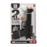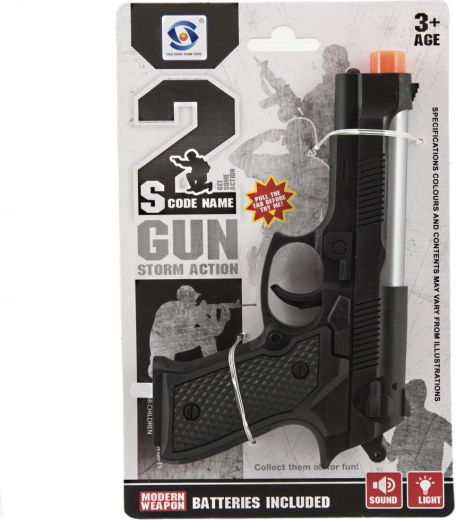 Dit realistisch ogende plastic pistool maakt alle kleine fans van actiespellen blij. Dankzij de licht- en geluidseffecten zorgt het voor nog meer plezier en stimuleert het fantasie en creatief spel. In de verpakking vind je alles wat je nodig hebt – 2× AG10 batterijen zijn al inbegrepen.
