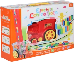 Set bevat: kleurrijke locomotief, stenenverdeler, 80 stuks domino en een plastic cactus als hindernis.