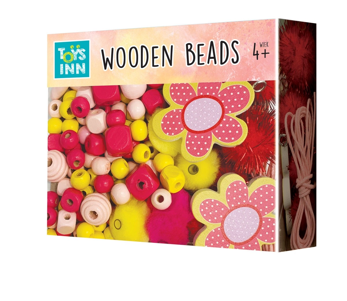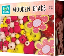Ontdek het plezier van creëren met deze creatieve set houten kralen in roze tinten. Maak je eigen armbanden en kettingen – de verpakking bevat alles wat je nodig hebt, inclusief houten kralen, pompons, houten hangers in de vorm van bloemen en een gewaxt koord. Ideaal voor kinderen vanaf 4 jaar en beginnende makers.