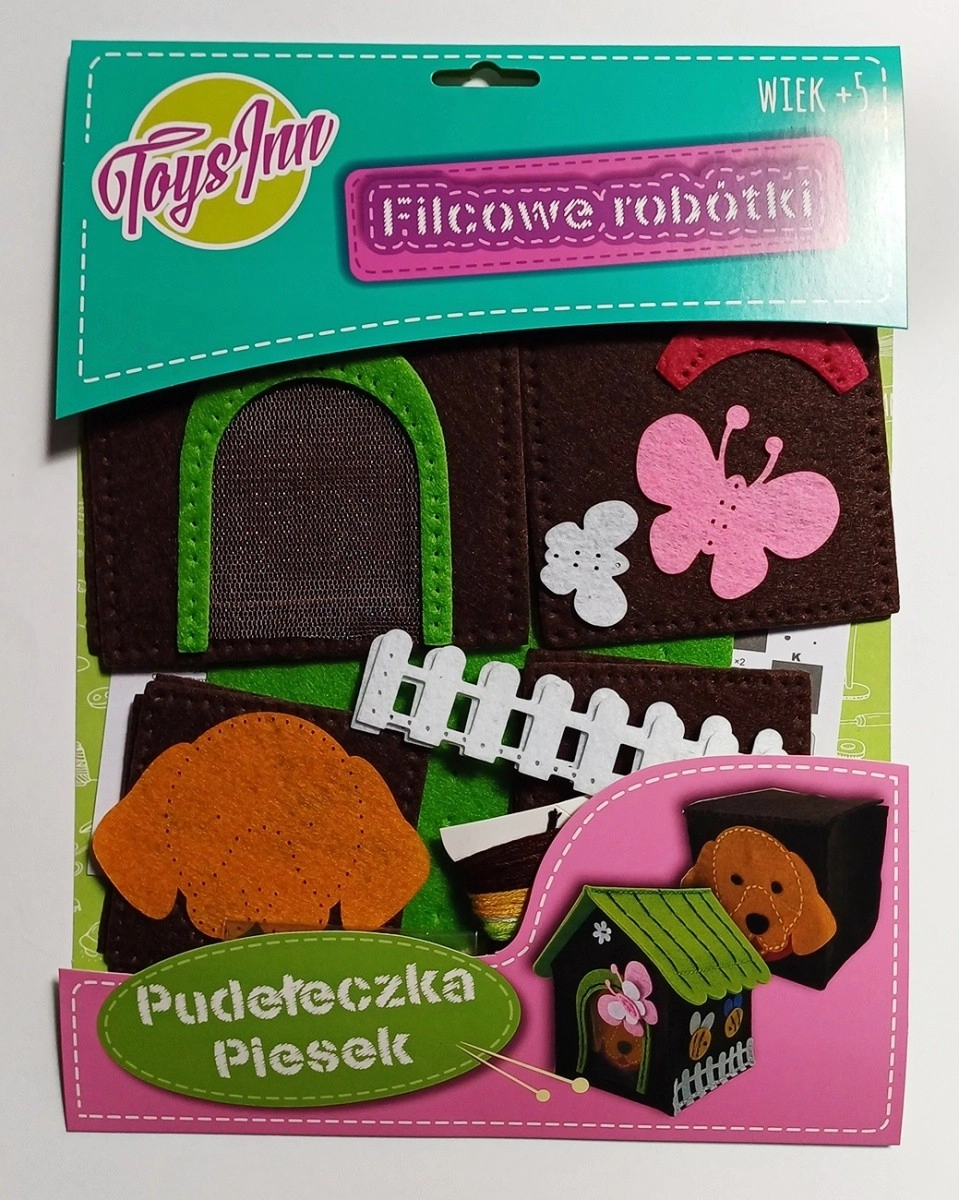 Ontdek de charme van vilten creaties en maak je eigen kamerdecoratie. Met deze creatieve set naai je een groter doosje in de vorm van een vogelhuisje en een kleiner vierkant doosje met een lief hondje. De set is ontworpen zodat naaien veilig en leuk is – er wordt een kunststof naald en katoenen garen gebruikt.