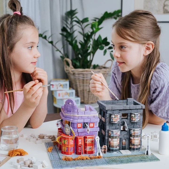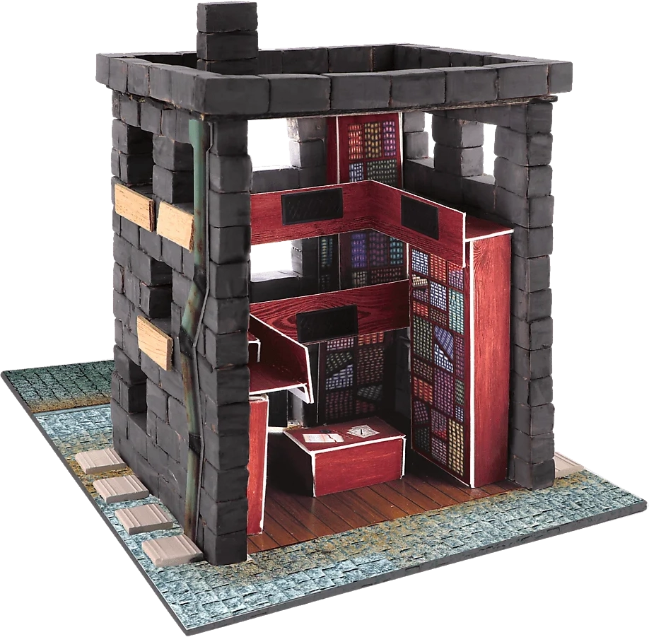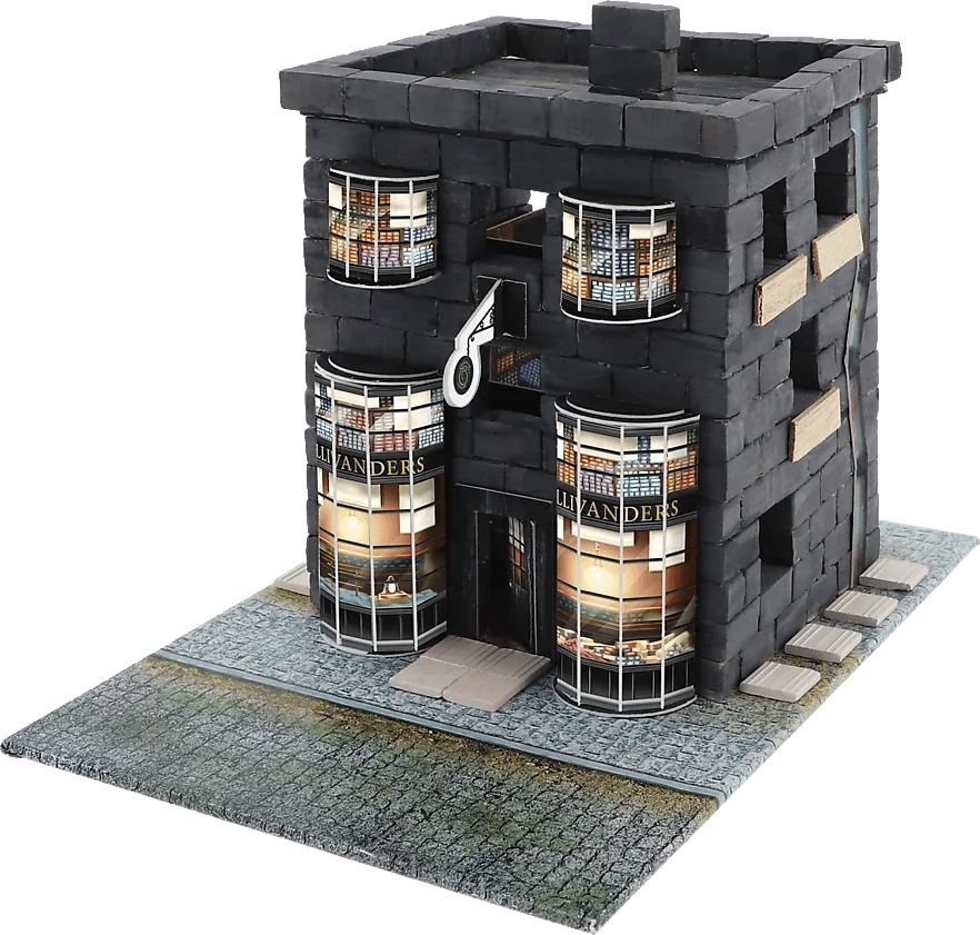 Maak een gedetailleerd 3D-model van de beroemde toverstokkenwinkel en geef je HARRY POTTER-collectie een uniek karakter. De bouwset gebruikt echte mini baksteentjes, houten elementen en decoraties van karton, mos en steentjes, waardoor het eindresultaat realistisch oogt en ideaal is om mee te spelen of tentoon te stellen.