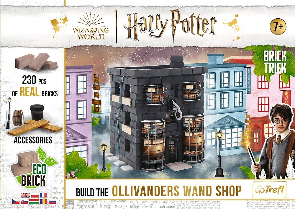 Bouw de iconische winkel van Ollivander in de Wegisweg met meer dan 90% natuurlijke materialen. De set bevat 230 echte mini baksteentjes, houten latjes en kartonnen decoraties voor een authentieke uitstraling. Dankzij de oplosbare lijm kun je het model weer uit elkaar halen en opnieuw bouwen. De creatieve bouwset BRICK TRICK HARRY POTTER ontwikkelt motoriek, verbeelding en concentratie en is een perfecte aanvulling op je magische diorama.
