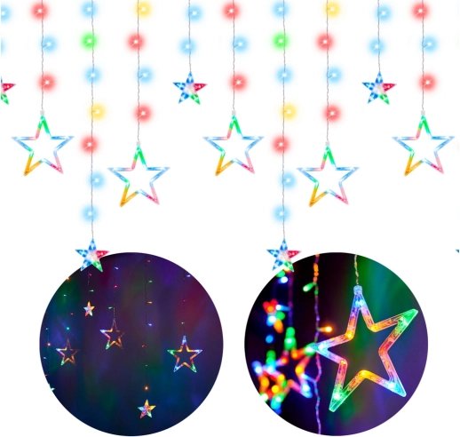 Breng kerstsfeer in huis met dit LED-lichtgordijn met sterren van 2,5 m en 138 LED’s. Het biedt kleurrijke multicolor verlichting, 8 lichtstanden en netvoeding voor ononderbroken gebruik zonder batterijen. Ideaal als feestelijke decoratie én gezellige avondverlichting het hele jaar door.
