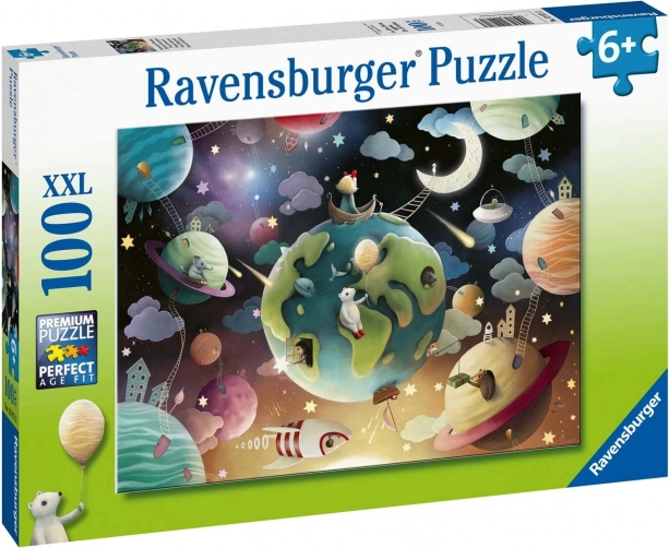 Ga op een kosmisch avontuur met de 2D kinderpuzzel Ravensburger Planet Playground met 100 stukjes. Ideaal voor kinderen vanaf 7 jaar, met een kleurrijke ruimte‑scène, hoogwaardig uitgesneden stukjes en nauwkeurige passing voor soepel puzzelen. De puzzel stimuleert logisch denken, geduld en fijne motoriek, waardoor plezier en leren hand in hand gaan.