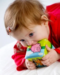 Het zachte foam is vriendelijk voor het tandvlees, ideaal om op te bijten en te kalmeren tijdens het doorkomen van tandjes. Vrij van ftalaten en gecertificeerd voor gebruik vanaf de geboorte.