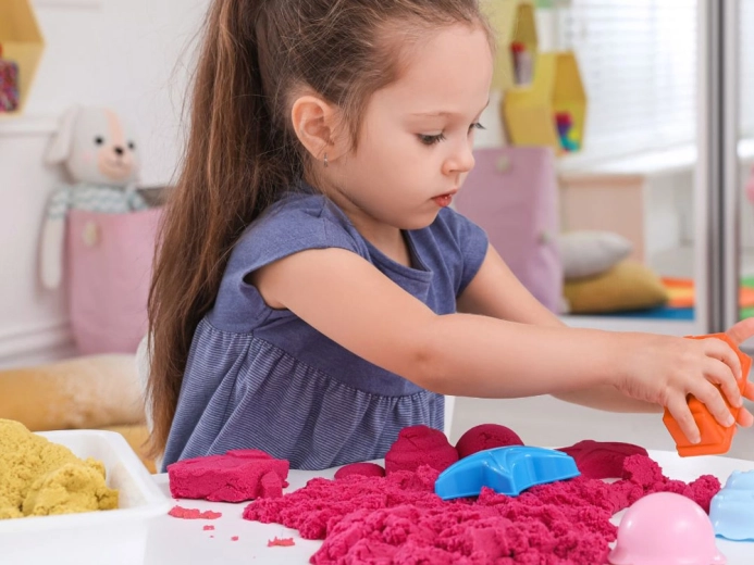 Met vijf kleuren zand – roze, paars, groen, blauw en naturel – beleeft je kind urenlang creatieve speelpret.