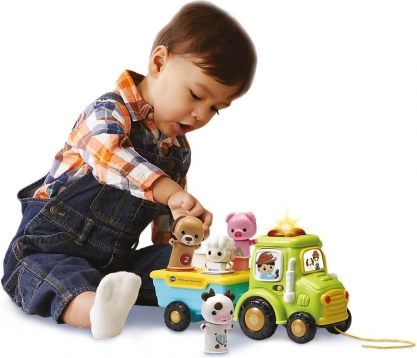 Ontdek de leuke en leerzame Vrolijke Tractor van VTech, die kinderen leert vormen, kleuren, dieren en getallen. De insteek- en “uitspringende” dieren wiebelen vrolijk tijdens het rijden en stimuleren de fijne motoriek en het logisch denken.