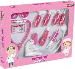 Verander de kinderkamer in een praktijk met deze complete roze doktersset. Kinderen oefenen hun fantasie, empathie en communicatie terwijl ze hun patiënten “behandelen” – knuffels, broers en zussen of ouders. De praktische instrumenten zijn ontworpen voor kleine handjes en geïnspireerd op echte medische hulpmiddelen.