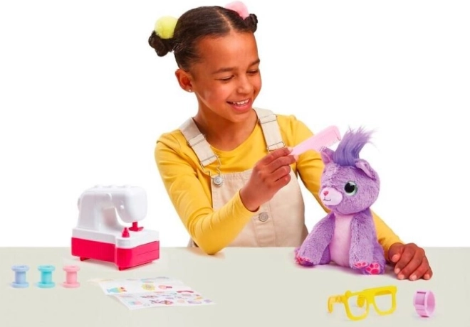 Het pluchen huisdiertje verschijnt in het begin als een verdrietig, zacht bolletje. Na een bad, kammen en verzorging ontdek je of je een katje of een hondje hebt. Neem daarna de naaimachine en gebruik een van de drie spoelen om prachtige outfits voor je huisdiertje te maken. Kies het boven- en onderstuk en maak de look af met een haarband of pet.