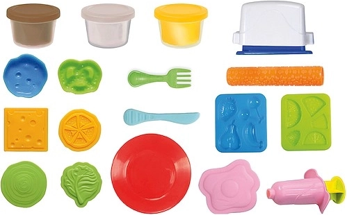 Deze creatieve set kinderklei maakt van tafelen een spel. Kinderen kunnen chefje spelen en van zachte klei toasts, plakjes kaas, groenten en andere “lekkernijen” maken. Dankzij de eenvoudig te hanteren tools is vormen snel en leuk.