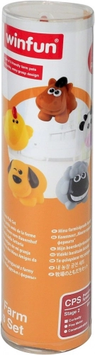De set bevat een hond, koe, kuikentje, paard en schaap. Kinderen leren de namen en geluiden van dieren, breiden hun woordenschat uit en stimuleren hun fantasie tijdens creatief vertellen.