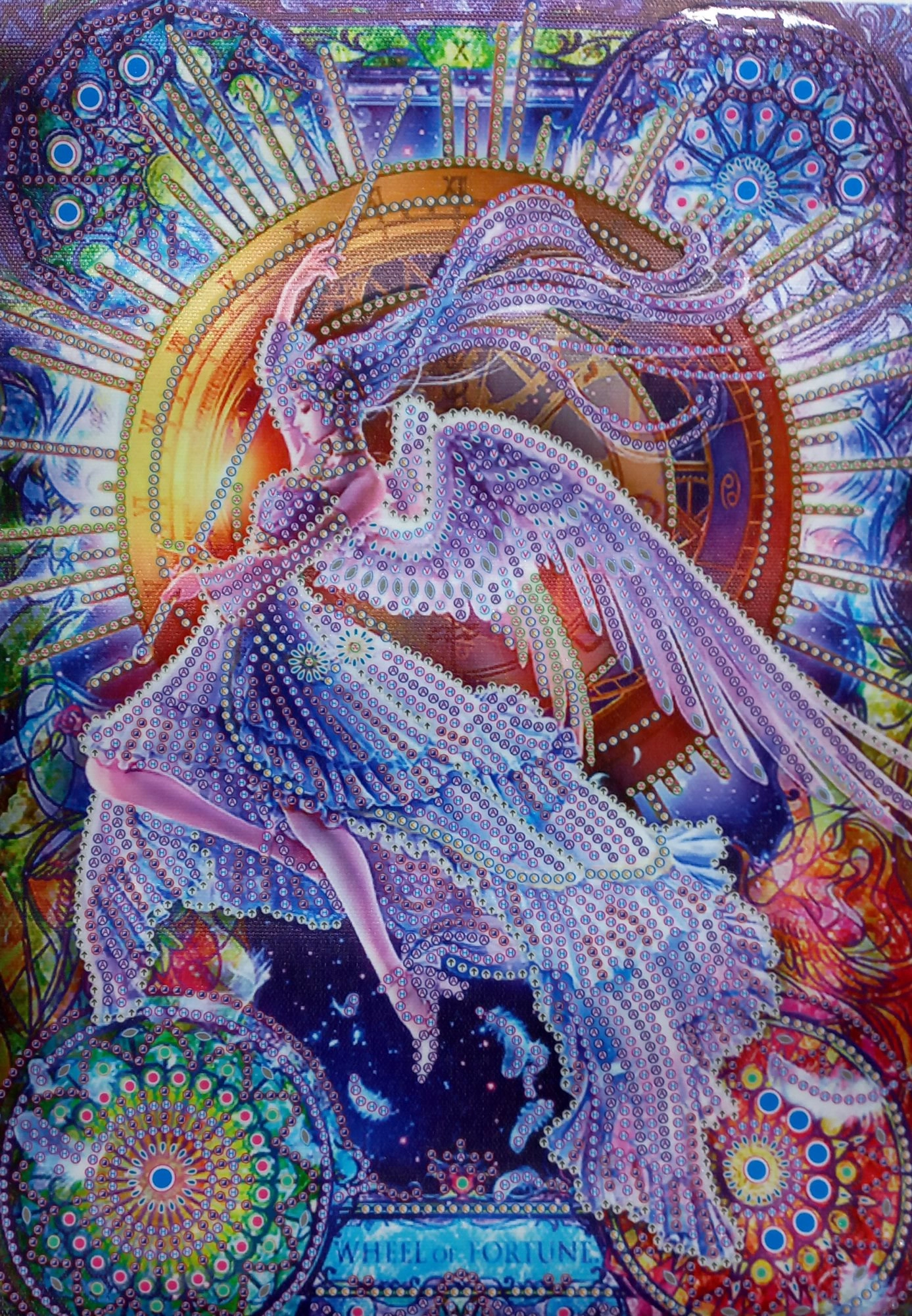 Creatieve set voor 7D diamond painting met het motief wiel van fortuin in het formaat 30 × 40 cm, ideaal voor zowel beginners als gevorderden. In de verpakking vind je alles wat je nodig hebt om een sprankelend mozaïekkunstwerk te maken – zonder artistieke vaardigheden. Perfect voor ontspanning en samen creatief bezig zijn; het afgewerkte werk kan ingelijst worden (lijst niet inbegrepen).