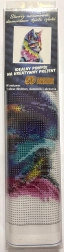 - Canvas met voorbedrukt motief, applicatiepen, schaaltje, was, set gekleurde steentjes, symbolenlegenda