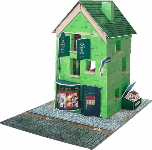 Breng een stukje van de tovenaarswereld in huis – de iconische boekhandel Krinkel & Zwinkel. De BRICK TRICK HARRY POTTER-bouwset gebruikt echte mini baksteentjes, houten latjes en kartonnen decoraties, waarmee je een gedetailleerd, realistisch resultaat bereikt. De lijm is oplosbaar in water, zodat je het model op elk moment kunt demonteren en opnieuw kunt opbouwen.