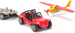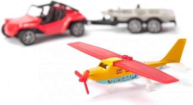 De verpakking bevat een zilverkleurige aanhanger met een speciale houder voor vliegtuigen, waardoor eenvoudig en veilig transport mogelijk is. Elk detail is zorgvuldig ontworpen voor maximaal plezier en avontuur.