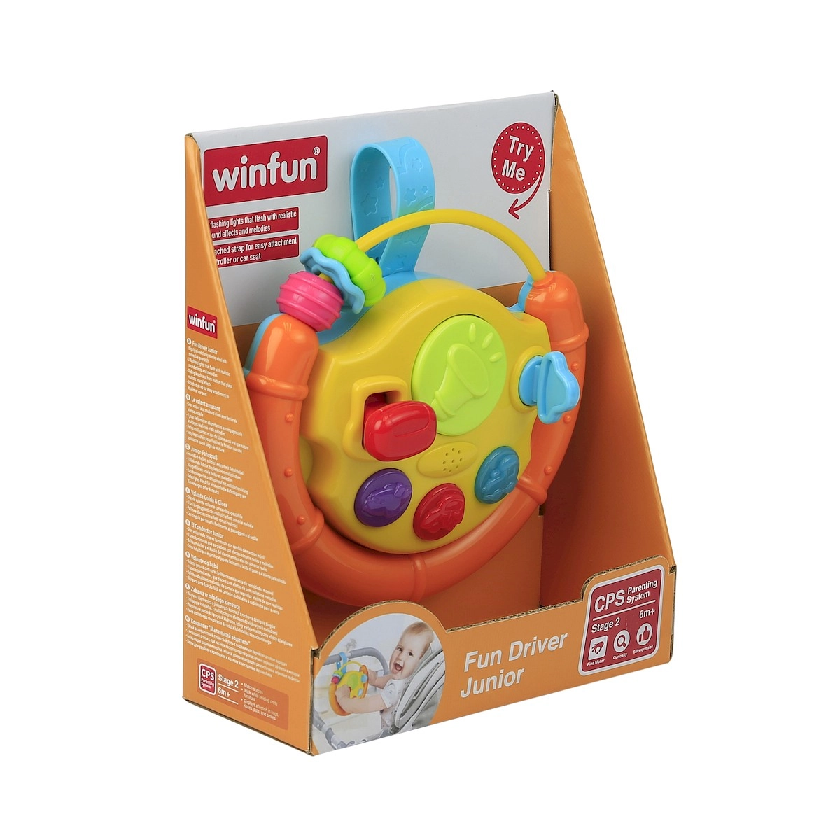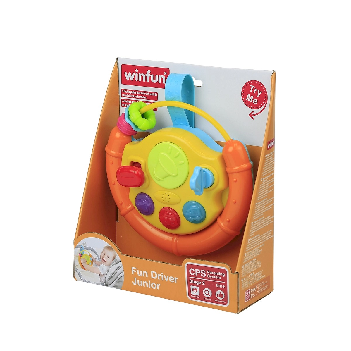 Dit kleurrijke stuur is een ideale activerende speelgoed voor de allerkleinsten. Knipperende lichtjes, vrolijke melodieën en diverse tactiele prikkels spreken kinderen aan. Beweegbare onderdelen zoals een balletje, autootje en visje nodigen uit tot ontdekken en oefenen de grijpreflex en oog-handcoördinatie.