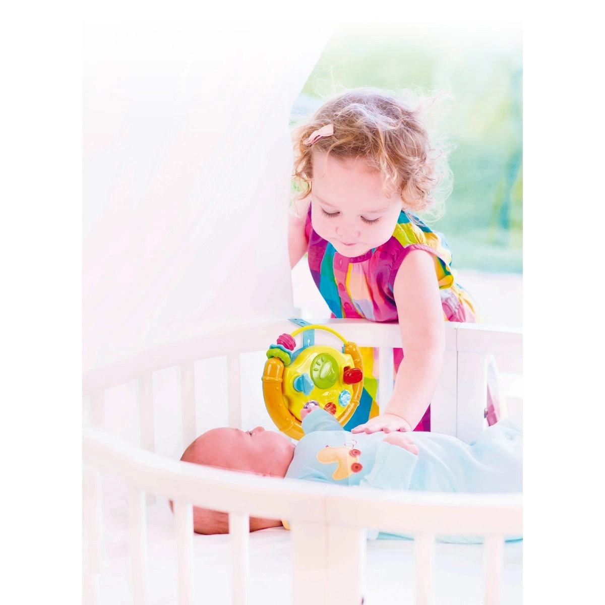 Dankzij de geïntegreerde riem bevestig je het stuur eenvoudig aan een ledikant, autostoeltje of kinderwagen voor plezier onderweg.