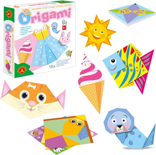 Ontdek een speelse introductie tot de wereld van origami met de creatieve set Mijn eerste origami – jurken van het merk Alexander. De doos bevat 30 gekleurde vellen met voorbedrukte vouwlijnen en stapsgewijze beeldinstructies zonder leeswerk. Dankzij de doordachte bedrukking maken kinderen originele jurkje-modellen en diertjes, terwijl het vouwen de fijne motoriek en het logisch denken stimuleert en een therapeutisch effect heeft.