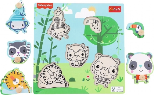 Deze hoogwaardige houten inlegpuzzel met officiële licentie van FISHER-PRICE biedt kinderen leuke junglemotieven en intuïtief leren. De basis met gefreesde omtrekken en zwart-witte graphics laat zien waar elk stukje hoort, zodat kinderen zich gemakkelijk oriënteren en plezier hebben in het succes.