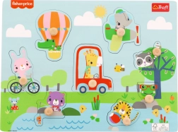 Ontdek een hoogwaardige houten inlegpuzzel met dieren die zowel kinderen als ouders zal bekoren. Elk puzzelstuk heeft een stevige houten knop voor gemakkelijk vastpakken met kleine handjes en de kleurrijke illustraties nodigen uit tot herhaald spelen. De basis met uitgefreesde vormen en zwart-witte contouren van dezelfde motieven vergemakkelijkt het juiste toewijzen.