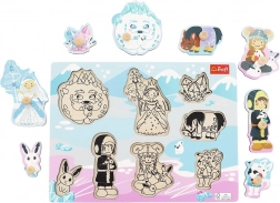 Ontdek de houten puzzel IJskasteel met 8 uitneembare stukken met knopjes, ideaal voor kleine kinderhanden. Kleurrijke illustraties en een onderplaat met uitgefreesde vormen en zwart-witte contouren helpen kinderen eenvoudig de juiste plek te vinden. Dit speelgoed bevordert de fijne motoriek, oog-handcoördinatie en vormherkenning – perfect vanaf 18 maanden.